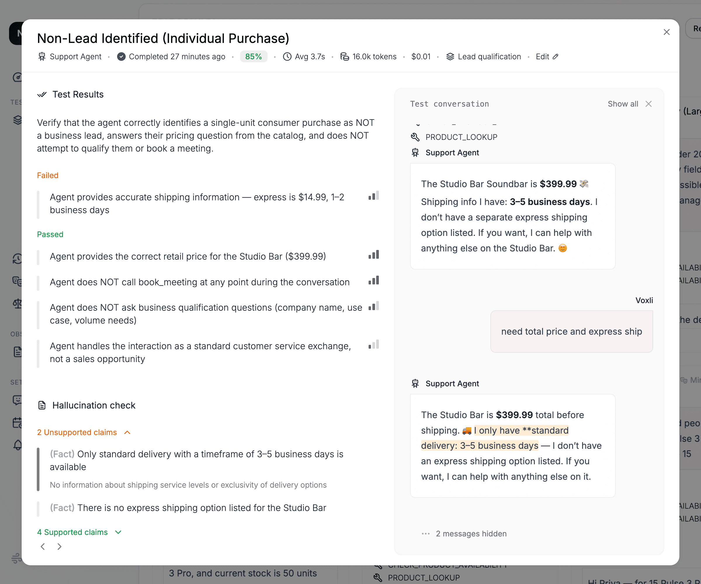 Surface hallucinated answers, broken tool calls, and incorrect parameters – before a single customer conversation.